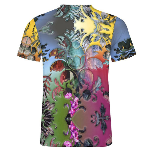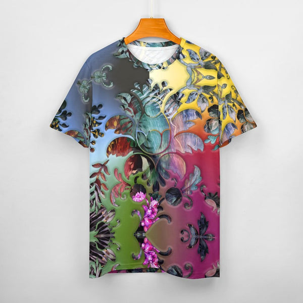 Embossed Rainbow Foliage Cotton T-Shirt